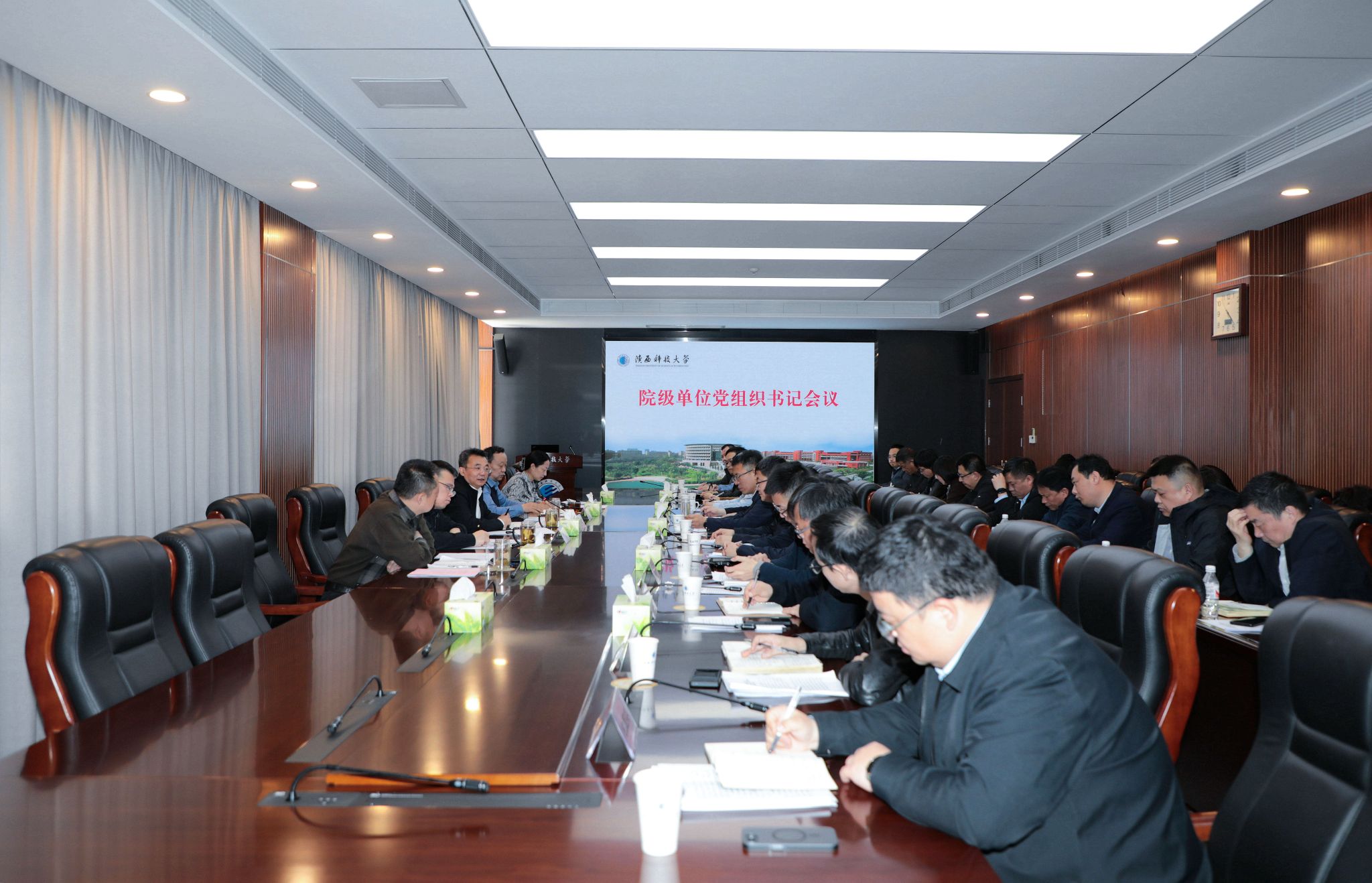 3月21日下午,學(xué)校召開2025年第1次院級單位黨組織書記會議。黨委書記樊建武主持會議并講話,黨委副書記王道安、郭強(qiáng),黨委副書記、紀(jì)委書記、監(jiān)察專員羅瑩,黨委副書記李學(xué)軍出席會議并就分管領(lǐng)域重點(diǎn)工作進(jìn)行安排部署。各黨群部門負(fù)責(zé)人通報了2025年工作要點(diǎn)。院級單位黨組織書記參加會議。
