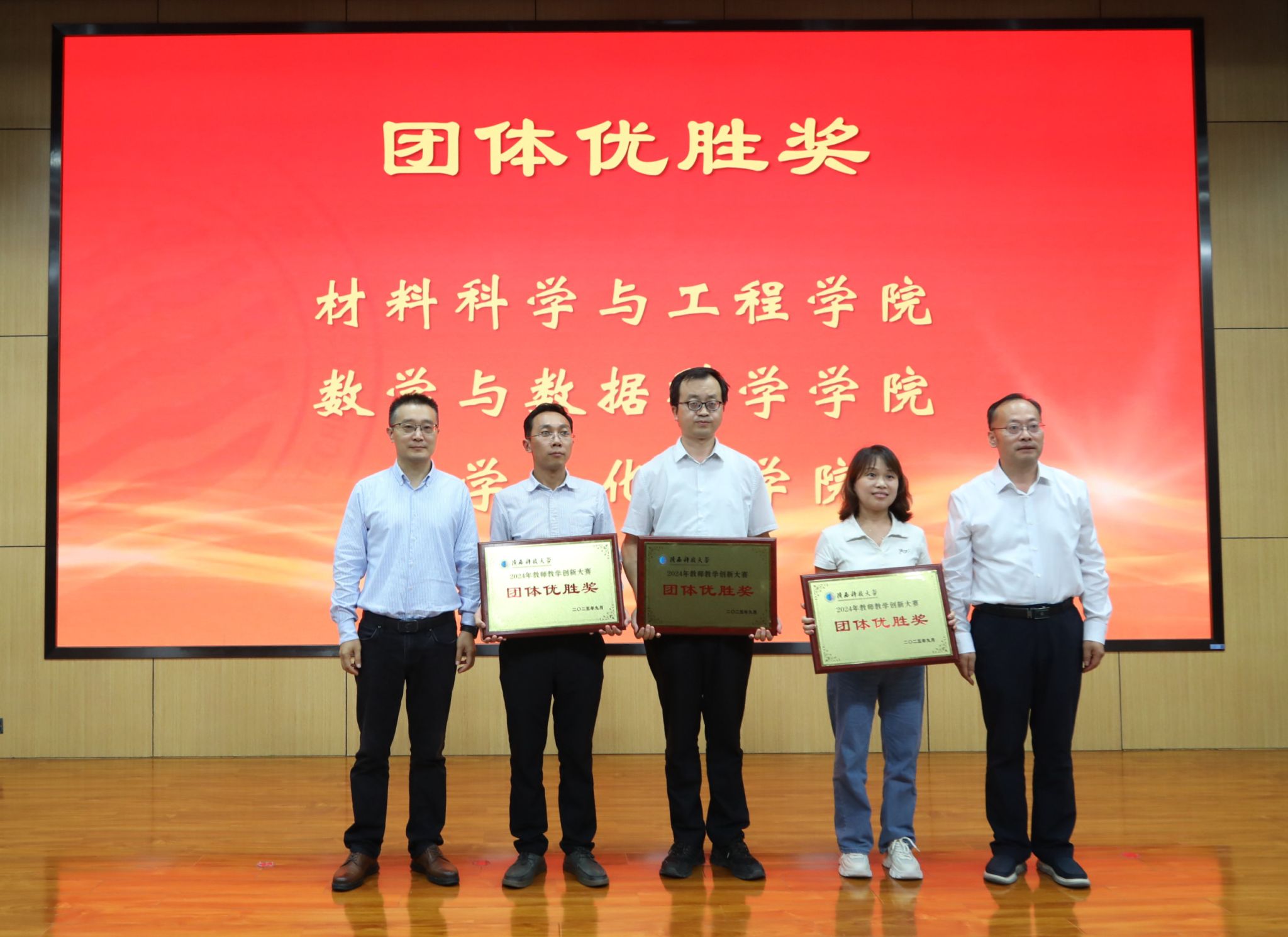 本次大賽對標省級競賽機制,首次增設“產教融合賽道”和“課程思政賽道”,與原有的“正高賽道”“副高賽道”“中級賽道”五軌并行。賽事歷時一年,經歷學院初賽和兩輪校級復賽的層層選拔,吸引400余名教師參與初賽,73人晉級復賽,最終8名教師進入決賽。經過激烈角逐,機電工程學院劉苗老師獲“中級賽道”特等獎;大賽還評出各賽道一等獎7名、二等獎16名、三等獎20名。材料科學與工程學院、數學與數據科學學院和化學與化工學院獲團體優勝獎。