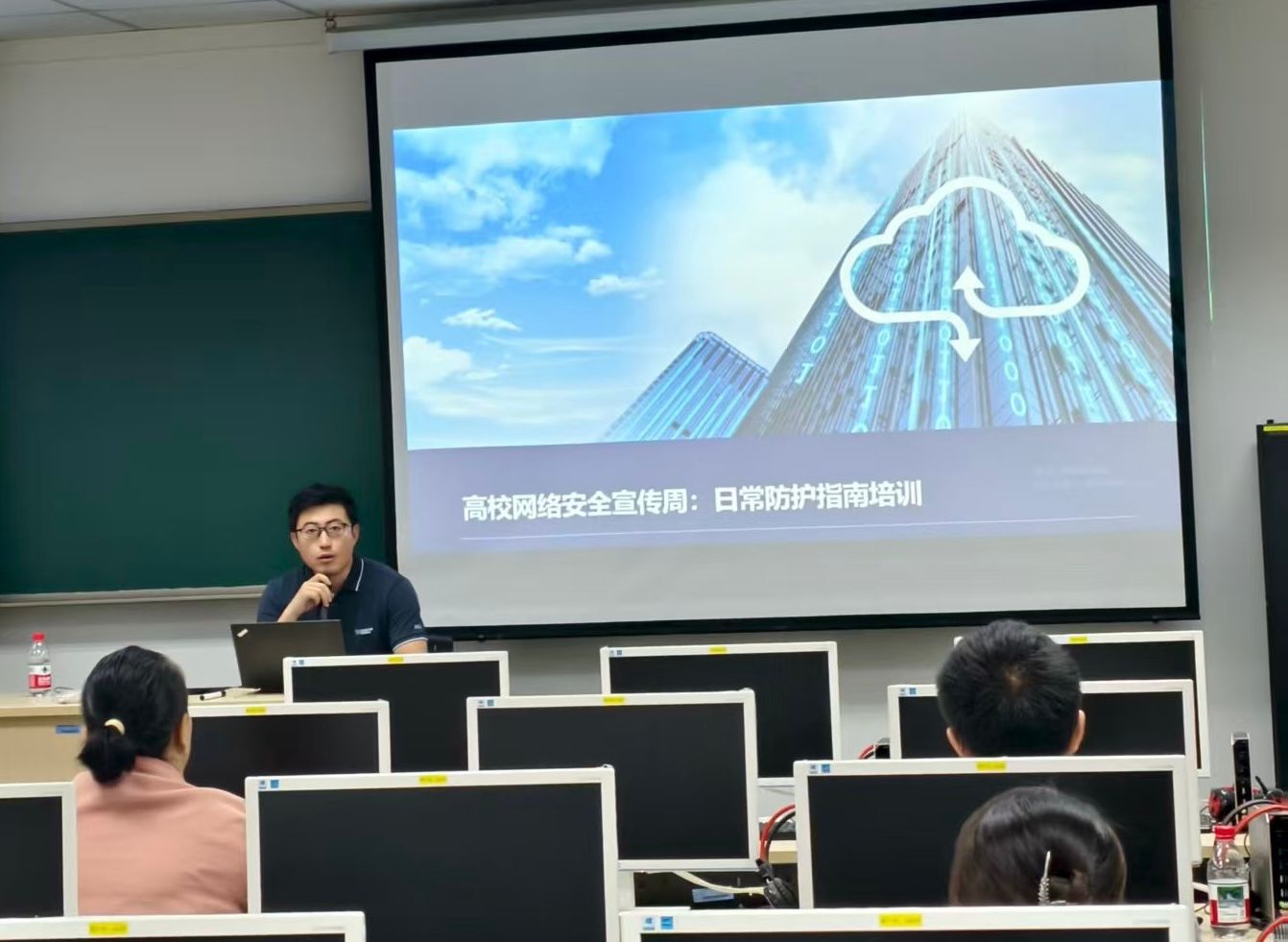 專家培訓提升防護技能。學校邀請深信服科技高級網絡安全專家作題為“高校網絡安全宣傳周——日常防護指南”專題培訓,通過理論解讀與真實案例剖析,為校內信息員提出切實可行的防范建議,進一步強化了學校網絡安全隊伍建設。