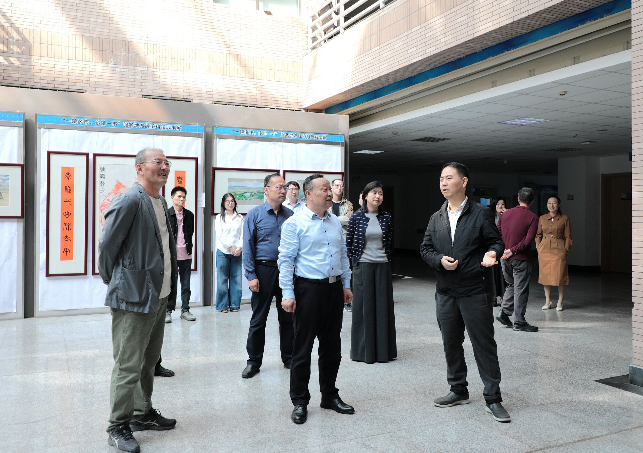 9月25日,在中國人民抗日戰爭暨世界反法西斯戰爭勝利80周年之際,由校工會和宣傳部主辦,校教職工書畫協會承辦的“丹青銘史 翰墨開新”主題書畫展在逸夫樓A座大廳舉行。黨委副書記王道安,副校長黃海峙、馬力,部分師生代表和書畫愛好者參加活動。
