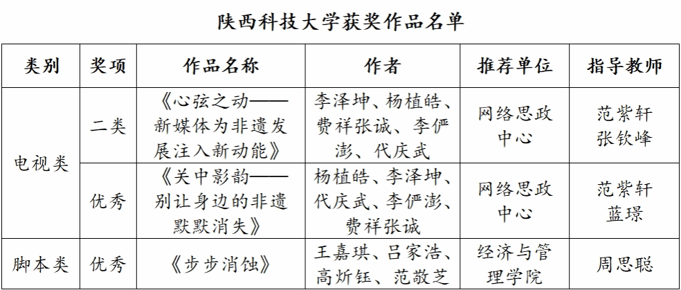 陜西科技大學3項作品在2024年陜西省大學生廣播電視公益廣告作品征集活動中獲獎