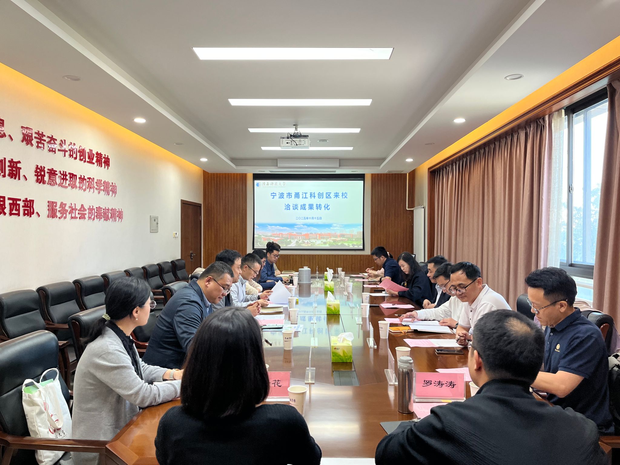 為深入貫徹落實學校第三次黨代會精神,扎實推進服務(wù)社會創(chuàng)優(yōu)行動,深化產(chǎn)學研協(xié)同創(chuàng)新,10月15日下午,寧波市甬江科創(chuàng)辦副主任、高新區(qū)管委會副主任、黨工委委員俞承豪一行10人到陜西科技大學,圍繞科技成果轉(zhuǎn)化開展座談交流。副校長費貴強出席并致辭,食品學院、電控學院、前沿院相關(guān)人員參加座談。會議由科技處副處長徐衛(wèi)濤主持。