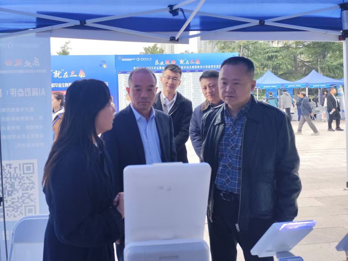10月23日,2025年全國城市聯合招聘高校畢業生陜西科技大學秋季專場招聘會在至博大道文化長廊舉行。黨委副書記李學軍到場調研指導。