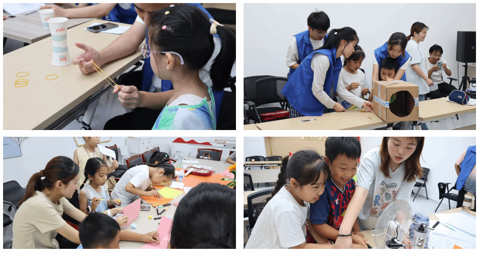 “做中學”環節,實踐團將科學知識融入趣味實驗,如“空氣炮”“紙杯飛機”“走馬燈”等,吸引孩子們注意力,講解科學原理,讓科學變得生動。同時開設英語、閱讀、手工等課程,助力孩子全面發展。