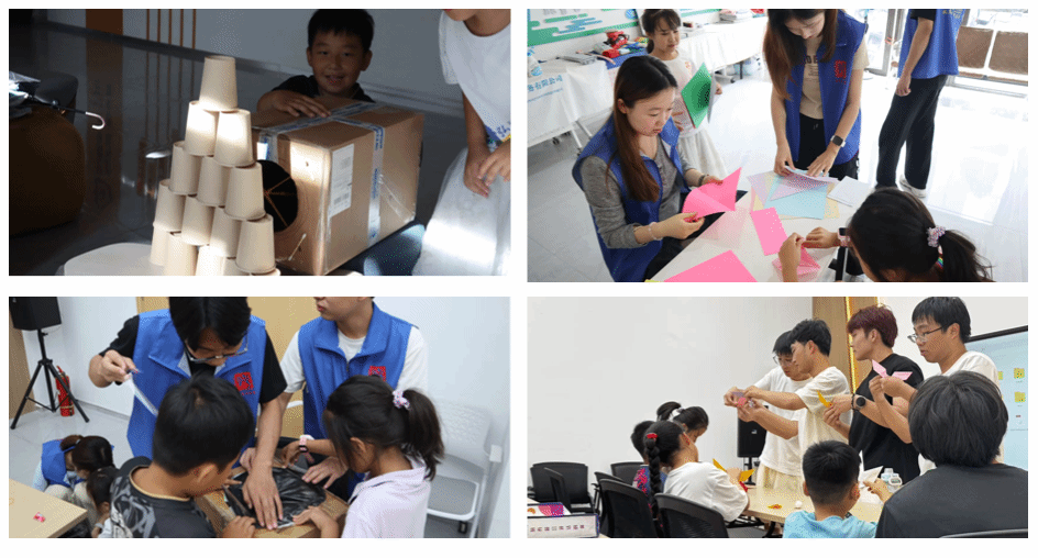 “創中學”環節,實踐團組織學生以手工實驗為基礎,自主設計比賽。孩子們分組合作,從討論設計到動手制作,利用身邊材料改進實驗作品,如為“空氣炮”加噴嘴、“紙杯飛機”貼尾翼等,提升動手能力和創新思維,體會團隊合作力量。