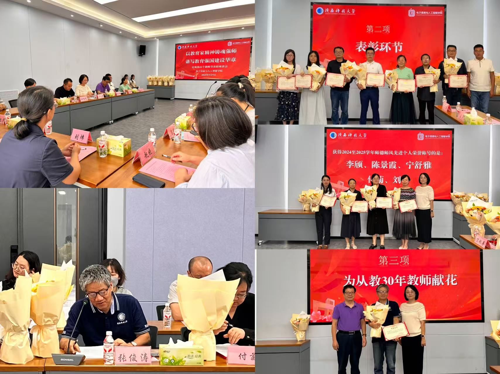 9月9日至10日,在第41個教師節來臨之際,電智學院開展系列慶祝活動,通過選樹典型、表彰先進、師生互動等多種形式,大力弘揚教育家精神,營造尊師重教、崇智尚學的濃郁氛圍,全面展現學院師德師風建設成果。