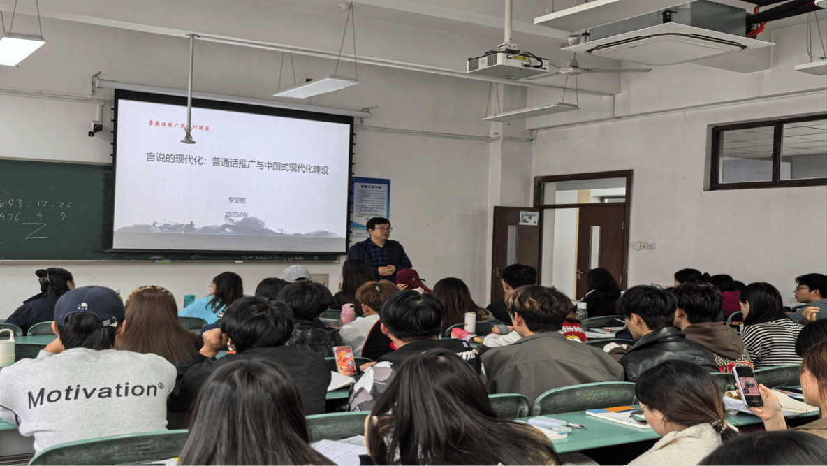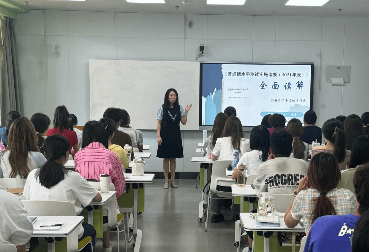 校內活動百花齊放,涌現推普潮。舉辦《言說的現代化:普通話推廣與中國式現代化建設》《普通話水平測試實施綱要讀解》專題講座;為民族生定制《說好普通話,融入新校園》主題報告,助力民族學子快速適應校園生活。中華經典誦寫講基地舉辦了“推廣普通話,傳承抗戰精神”主題朗誦會,在宣傳推廣普通話和朗誦藝術的同時,進一步提升學生規范用語意識和社會責任感。校團委以“青春為中國式現代化挺膺擔當”為主題,組織開展了“聲誦中國”經典作品誦讀活動。普通話測試站緊扣推普周主題,組織師生以規范用語講述反法西斯斗爭故事,通過生動敘事傳承紅色基因,同步多渠道宣傳發動,吸引超千名師生報名普通話水平測試,實現“以測促學、以學促用”。