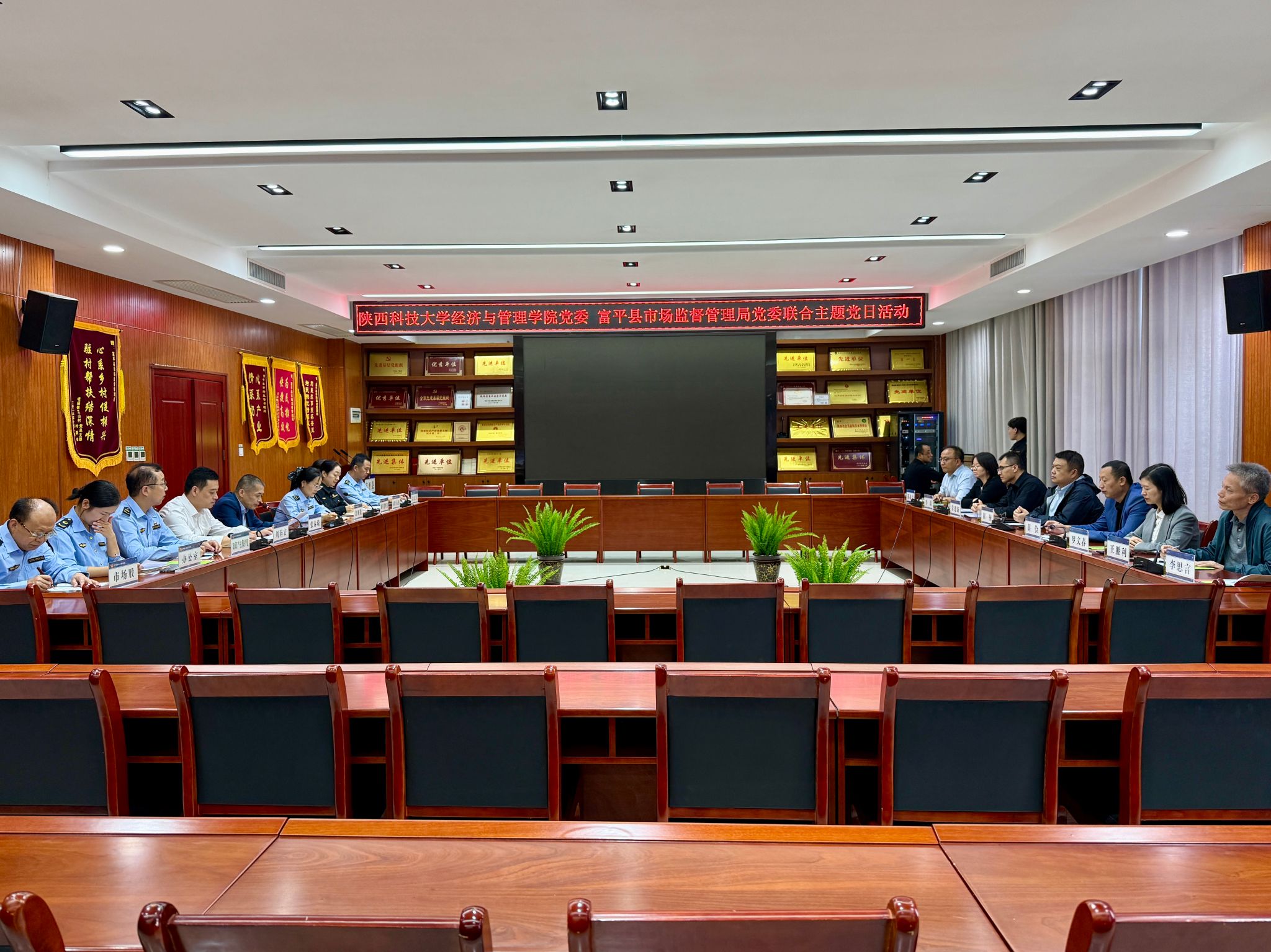 9月26日,經(jīng)管學(xué)院黨委與渭南市富平縣市場監(jiān)督管理局黨委聯(lián)合開展主題黨日活動。富平縣市場監(jiān)督管理局黨委書記、局長張春琦,副局長劉海宏,經(jīng)管學(xué)院黨委書記崔楠,院長薛儉,各系主任、科研平臺負責(zé)人及黨政辦公室主任等參加活動。