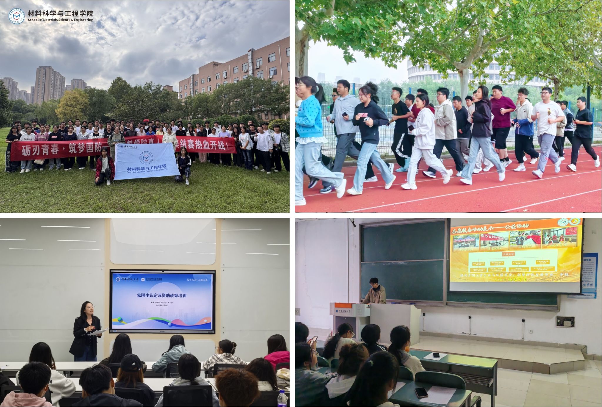 促進(jìn)五育并舉,拓展多元成長(zhǎng)平臺(tái),賦能學(xué)生發(fā)展。學(xué)院高度重視學(xué)生多元發(fā)展,打造“體·閱·學(xué)”三維浸潤(rùn)計(jì)劃,以“晨練暮學(xué)行動(dòng)”為抓手,提升新生對(duì)于閱讀和體育的熱情,營(yíng)造優(yōu)良學(xué)風(fēng)氛圍;軍訓(xùn)期間開(kāi)展“礪刃青春?材子筑夢(mèng)”校園真人CS大賽,在實(shí)踐中體悟國(guó)防意義,為破解校園多元互動(dòng)難題提供了趣味載體;開(kāi)展競(jìng)賽科普、職業(yè)生涯規(guī)劃、資助政策宣講等專題講座,加強(qiáng)新生對(duì)科創(chuàng)競(jìng)賽的認(rèn)識(shí),解答新生個(gè)人規(guī)劃、考研與就業(yè)形勢(shì)、資助政策等方面問(wèn)題;舉辦新生辯論賽、校歌傳唱選拔賽、學(xué)生組織宣講會(huì)等,提高新生對(duì)參與課外活動(dòng)的熱情,鍛煉同學(xué)們的邏輯思維與書(shū)面表達(dá)能力,增強(qiáng)同學(xué)們身體素質(zhì)與班級(jí)凝聚力,極大程度上豐富了同學(xué)們的課余生活。