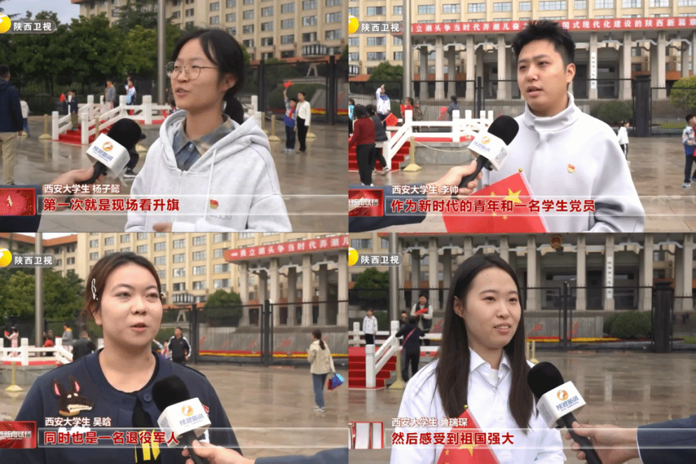 10月1日,為慶祝中華人民共和國成立76周年,陜西科技大學西部設計黨支部黨員代表們前往陜西省人民政府新城廣場觀看升旗儀式。晨曦微露,秋雨初歇,新城廣場上人群肅立,支部黨員與各界群眾共同等候莊嚴時刻。八時三十分,國旗護衛隊步伐鏗鏘,護送五星紅旗步入廣場。激昂的國歌奏響,紅旗在雨后澄澈的碧空下冉冉升起。成群和平鴿環繞國旗翱翔,羽翼劃出優美弧線,眾人齊聲高唱國歌,把對祖國的摯愛融入鏗鏘旋律。