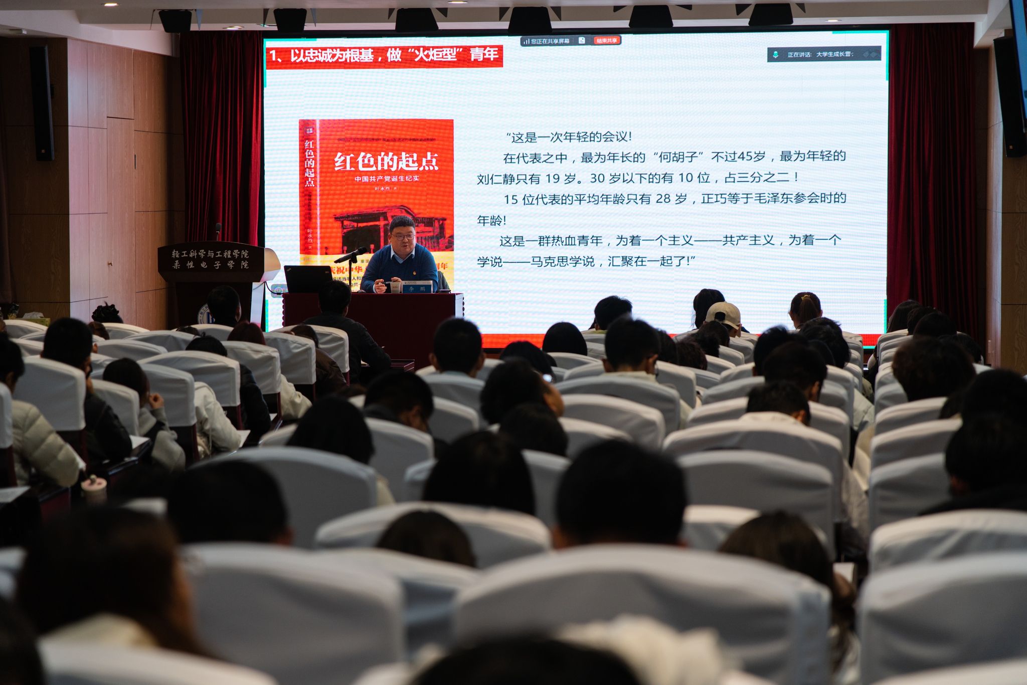 此次授課結合輕工學院“輕春啟航,筑夢遠行”大學生成長營主題活動開展。校團委、輕工學院、材料學院、環境學院、化工學院相關負責同志,2025級新生團員代表及團學組織骨干現場聆聽授課。