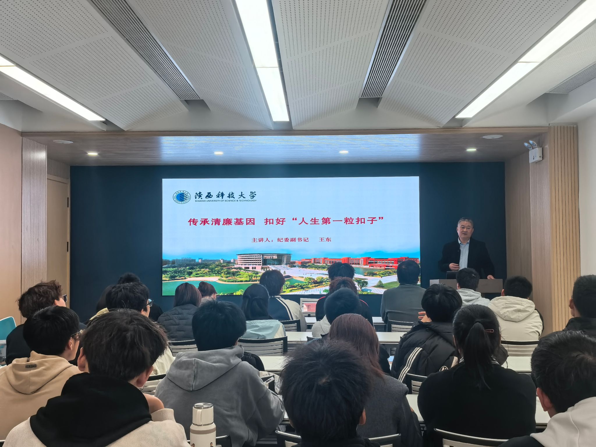 10月29日,校紀委副書記王東以《傳承清廉基因,扣好人生第一粒扣子》為題,為機電工程學院2025級新生講授了一堂立意深遠、內容生動的思政課。