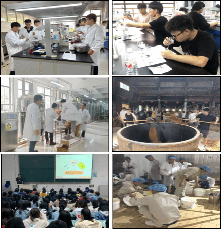 校企協同,共建產教融合育人體系。學院緊密圍繞陜西省白酒等重點產業鏈發展需求,與西鳳酒業、釀酒工程研究院、陜西糧食質量安全中心等單位深度合作,共建“食品科學與工程教改班”。以產業實際需求為導向,校企聯合構建“通識+專業+拓展+融合”四層次課程體系,圍繞糧食安全檢測、白酒智能制造與品評、藥食同源資源開發等方向合作開發教學模塊。企業專家全程參與人才培養方案制定、課程建設與課堂教學,推動教學內容與行業標準緊密銜接,實現人才培養與產業需求同頻共振。